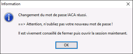 Dans les deux cas un message averti l’utilisateur du changement de mot de passe.
