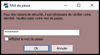 Au lancement de l’outil, l’utilisateur doit saisir son mot de passe actuel et son nouveau mot de passe.