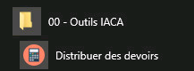 Pour donner des devoirs aux élèves depuis le réseau pédagogique, l’utilisateur doit lancer l’outil Distribuer des devoirs depuis le menu démarrer Outils IACA.