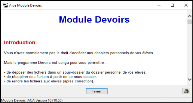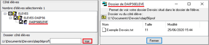 Le devoir est déposé dans un dossier nommé Devoirs (créé à ce moment-là) dans l’espace Documents de chaque élève.