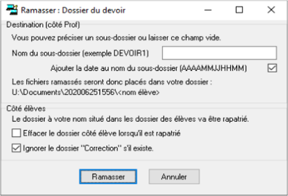 Une fois le travail effectué par les élèves, le professeur peut procéder au ramassage des copies en ayant au préalable sélectionné les élèves ou les classes concernées.